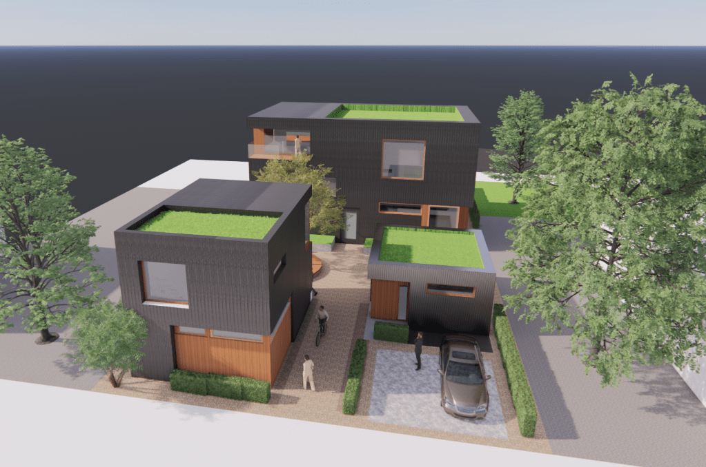 多户型住宅的设计与建造,配有共享庭院和社区活动空间。